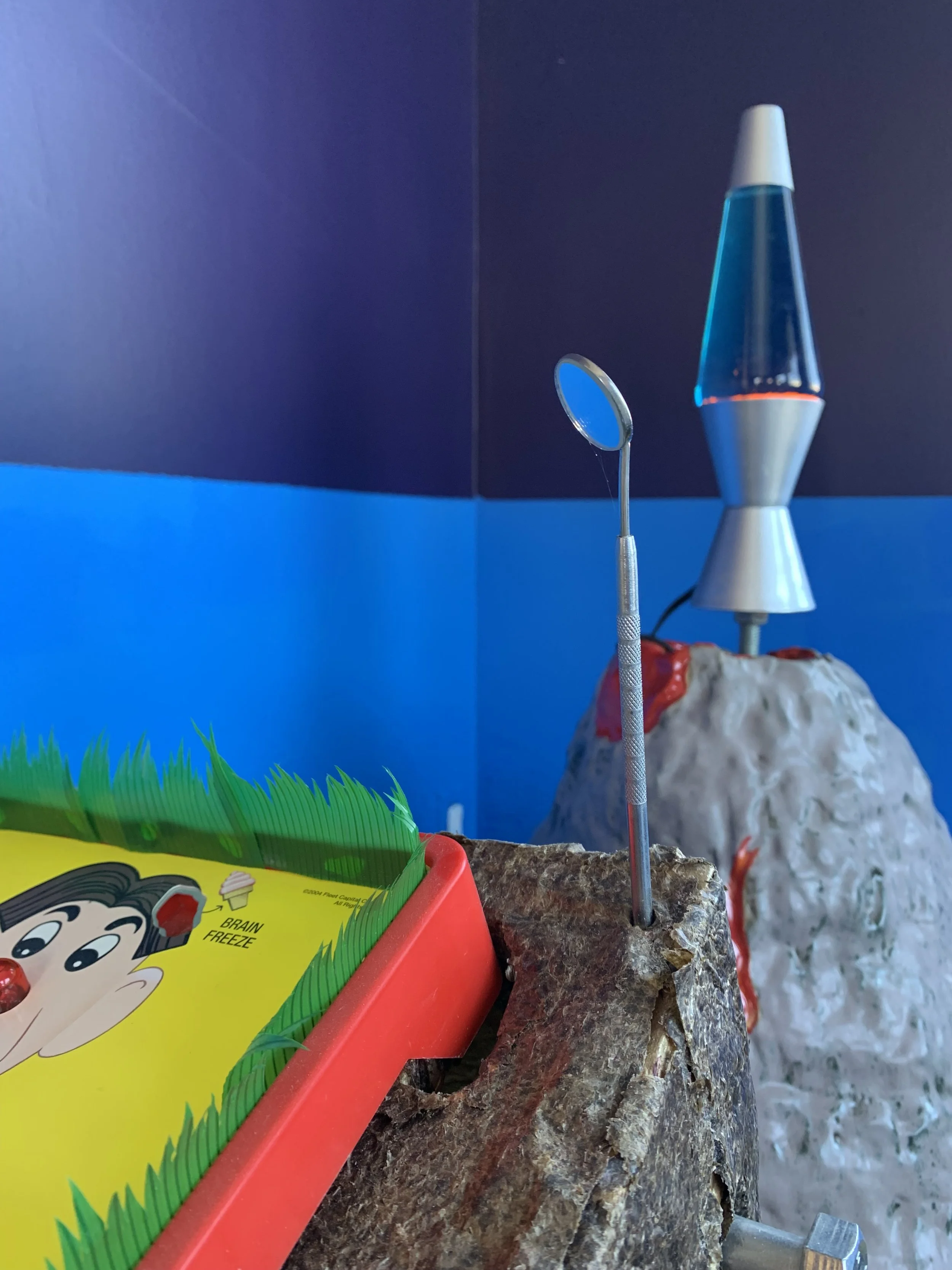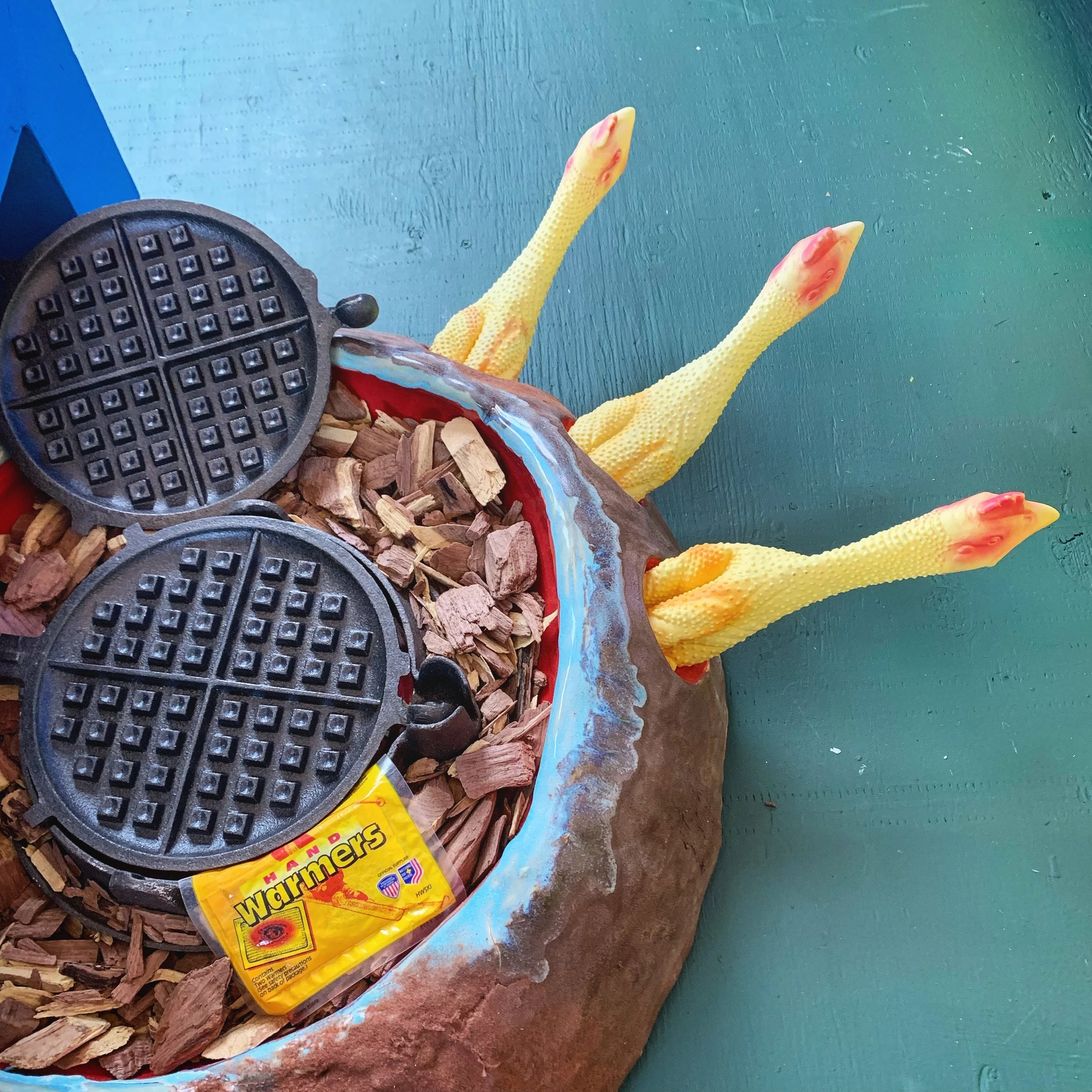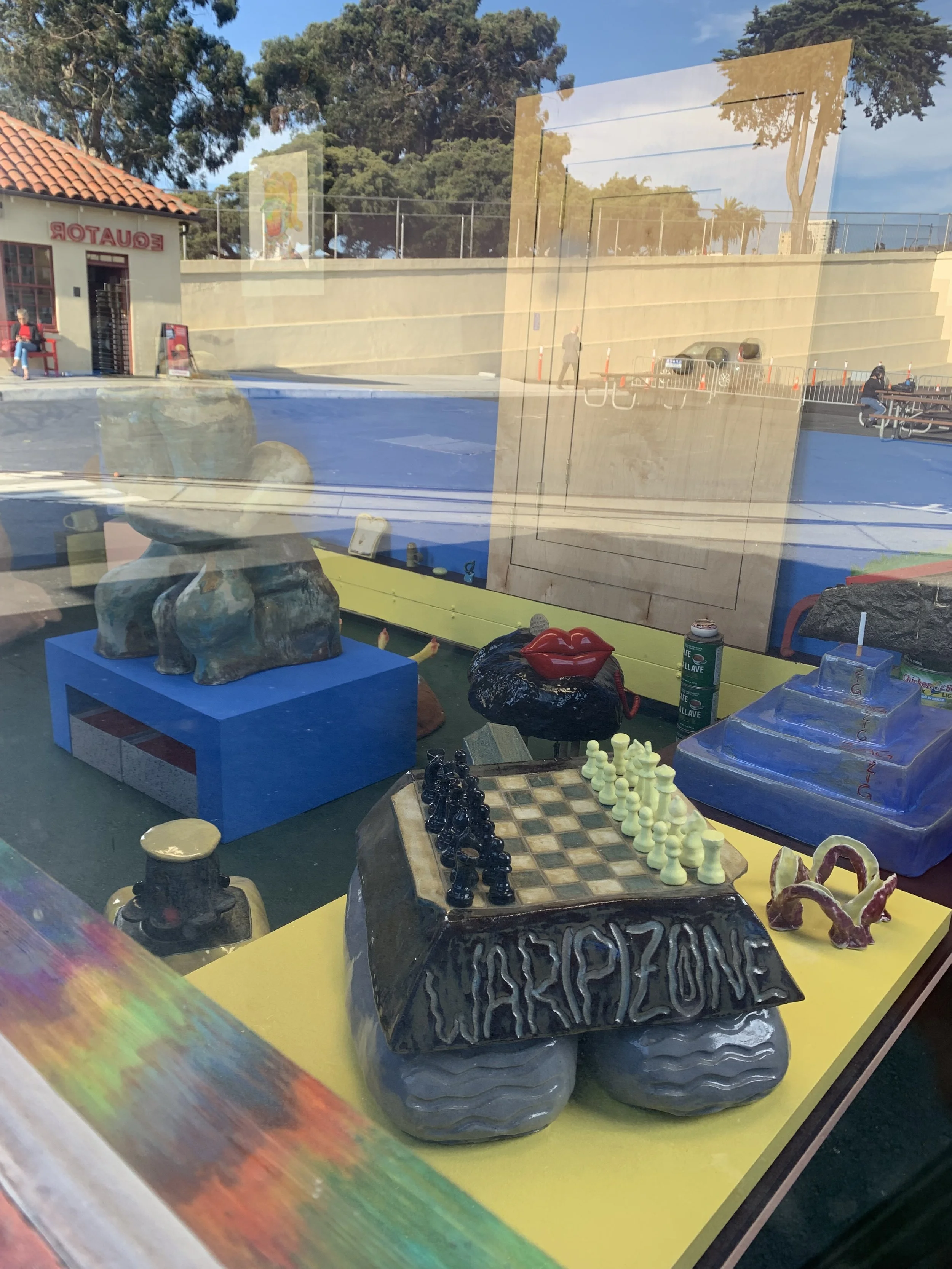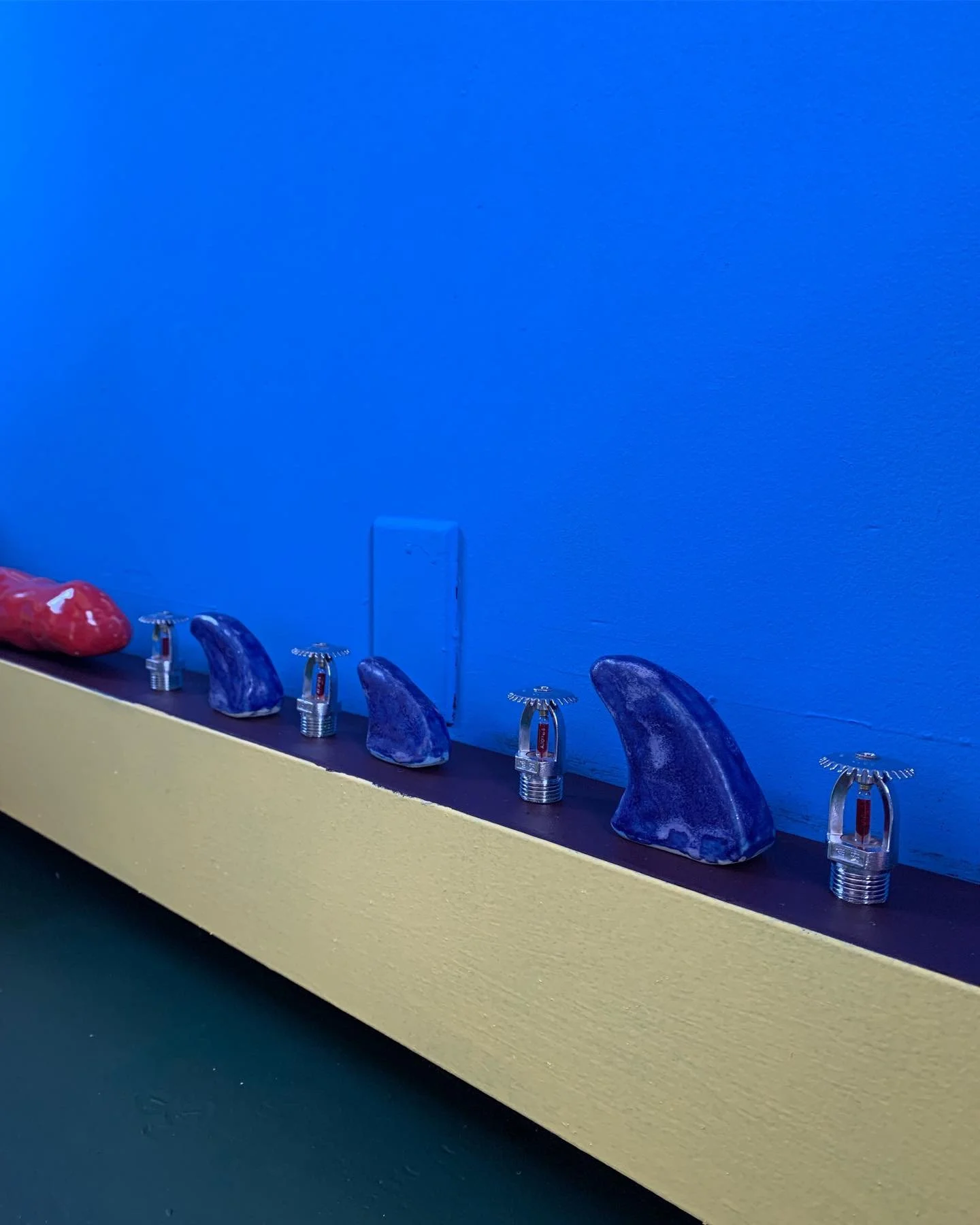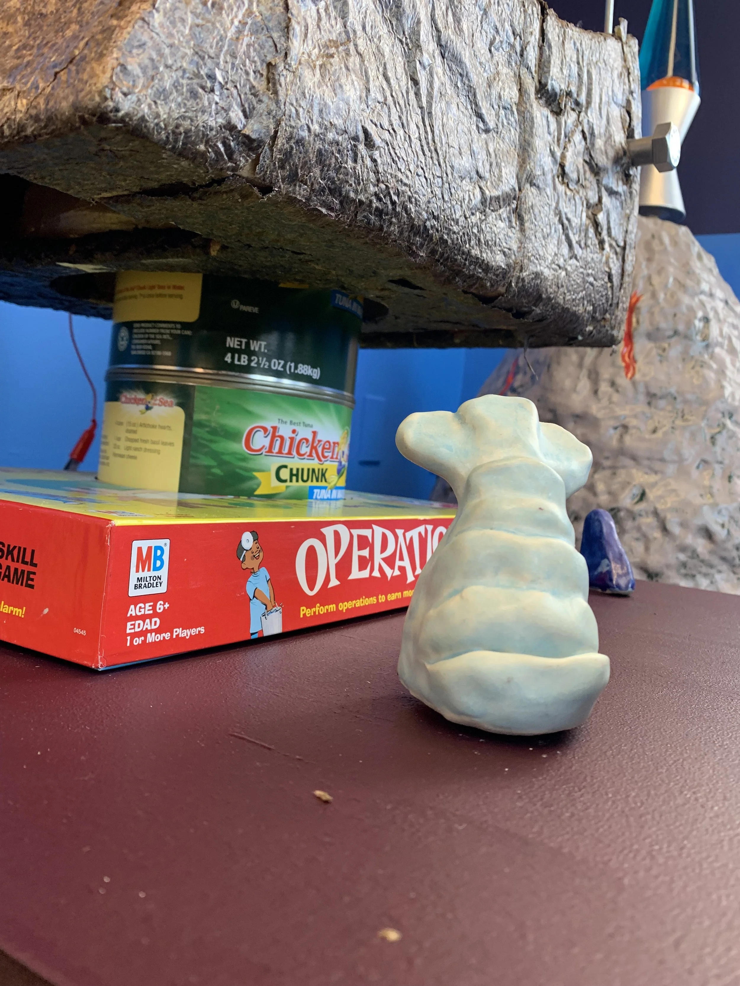 In KFG, the irreverence of Bay Area funk ceramics is expanded upon with broader material considerations, the relationship between objects across media, and the friction between the intimately caressed and cared-for material and the American consumer product. The coldness and ease of the online shopping click married to clay forms and their evidence of hand. The relationship of food-to-object through the longevity of the ceramic vessel and the short-lived yet over-sized consumer packaging of our snacks. Each work forms its own visual poem while the series provides insight into a practice of collecting, sourcing, and building a vocabulary of idiosyncratic art objects.